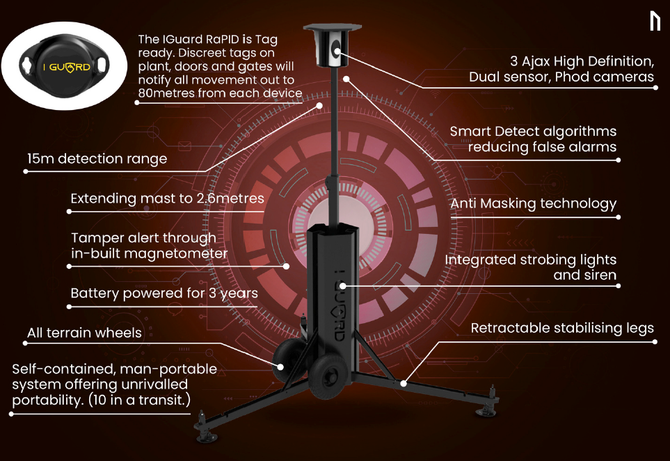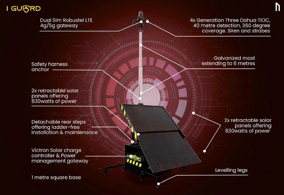 For larger or higher-risk areas, we offer portable CCTV towers with extended detection capabilities: