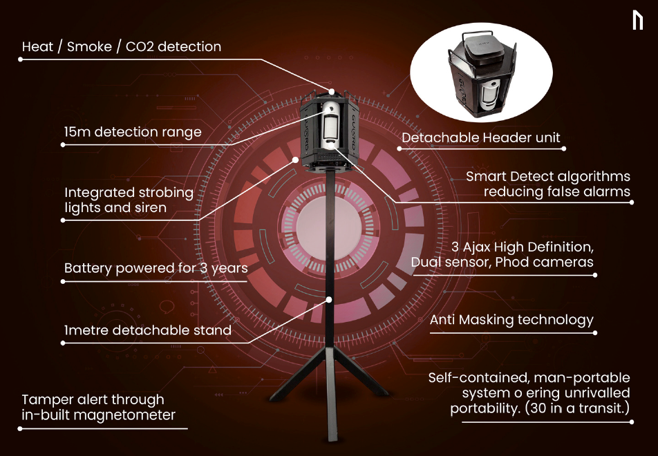 - Lithium battery-powered, encrypted intruder detection